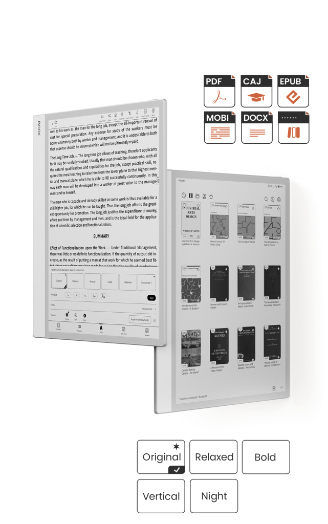 • Document Support: Compatible with multiple formats, including PDF, EPUB, MOBI, DOCX, and more, catering to diverse reading and editing needs.